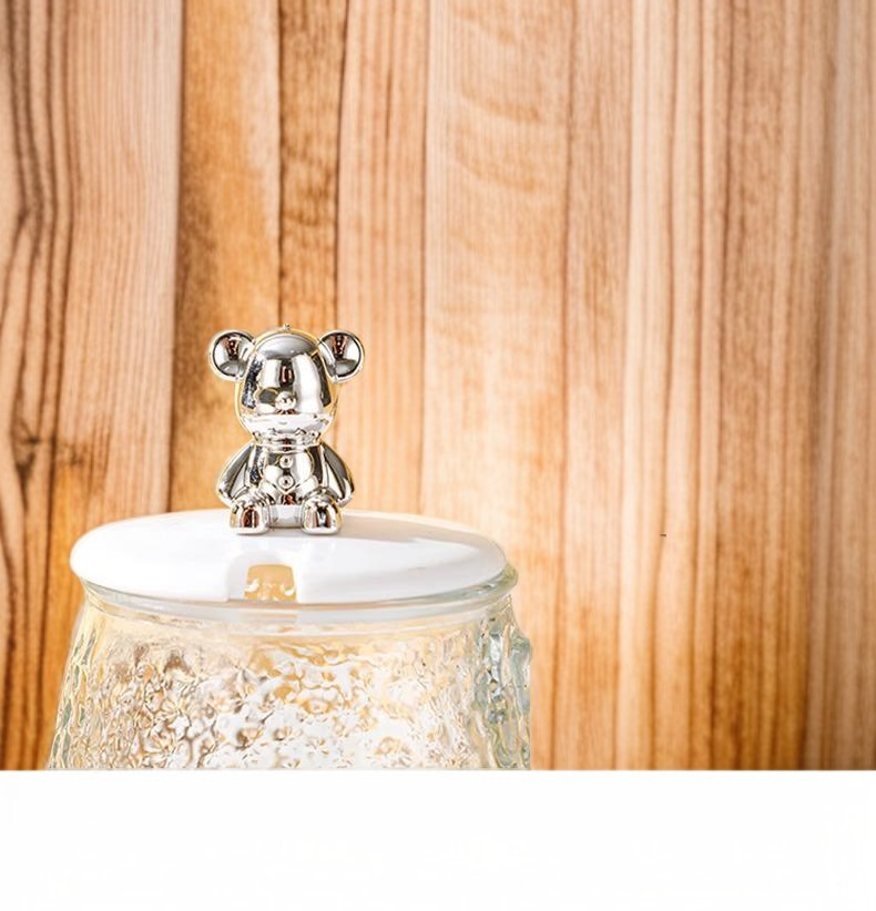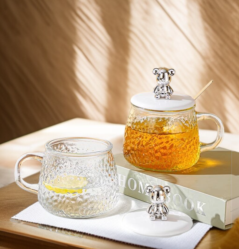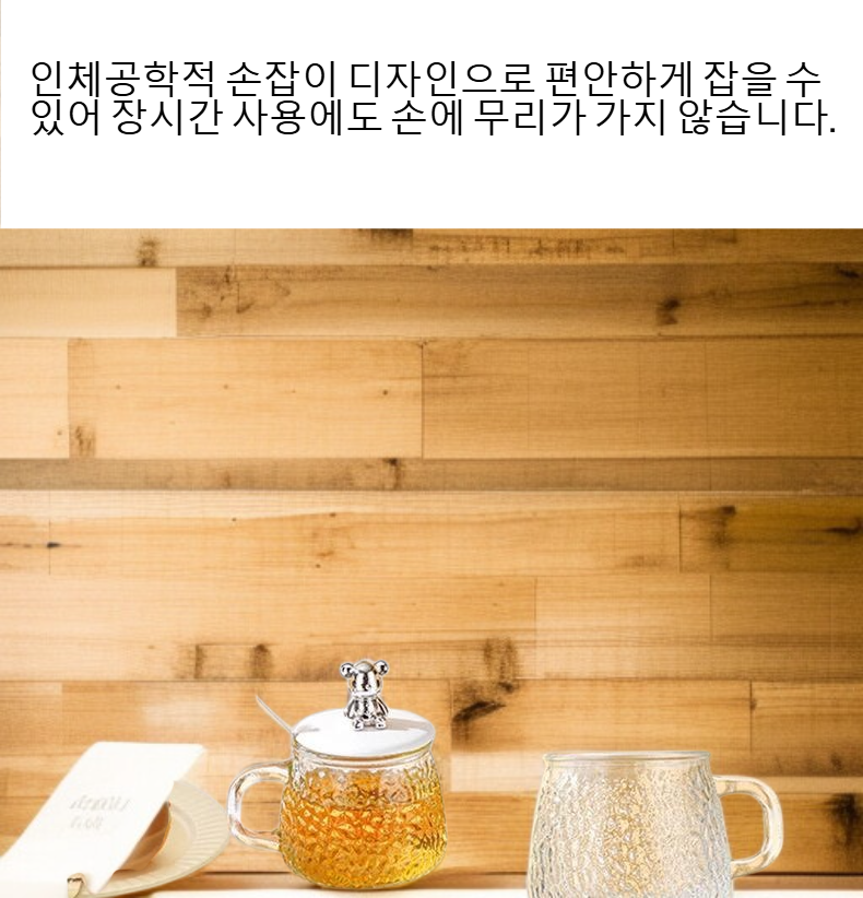 고급 곰돌이 머그컵 사무실 커피컵 물컵 유리 손잡이 꽃차컵