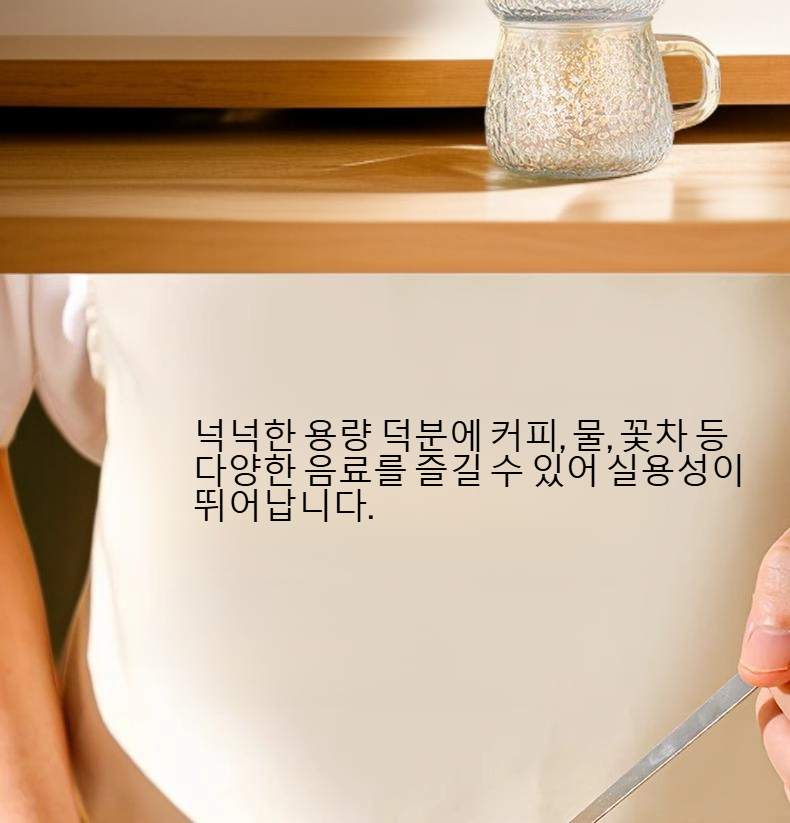 ● 넉넉한 용량 덕분에 커피, 물, 꽃차 등 다양한 음료를 즐길 수 있어 실용성이 뛰어납니다.